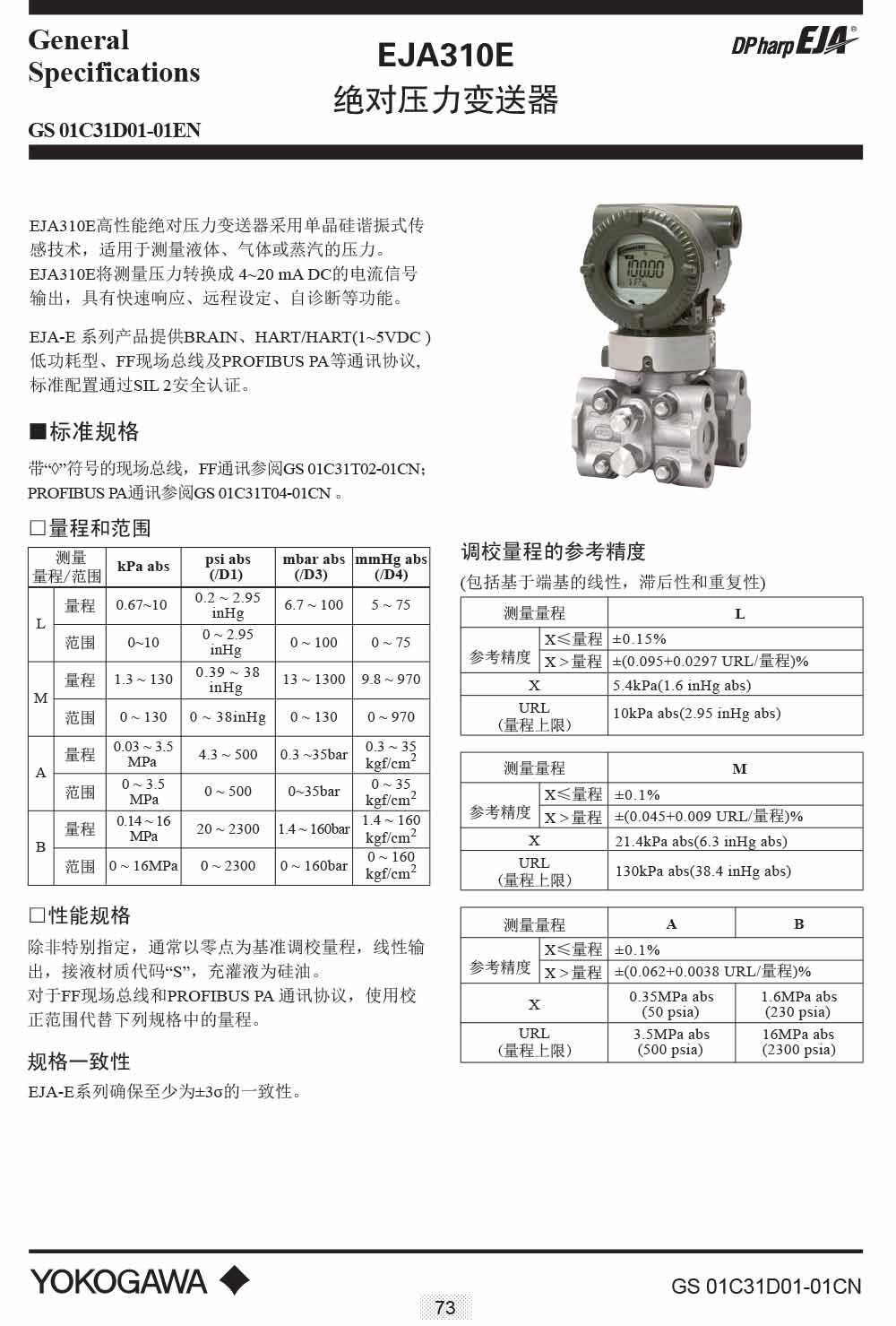 EJA310E絕對壓力變送器