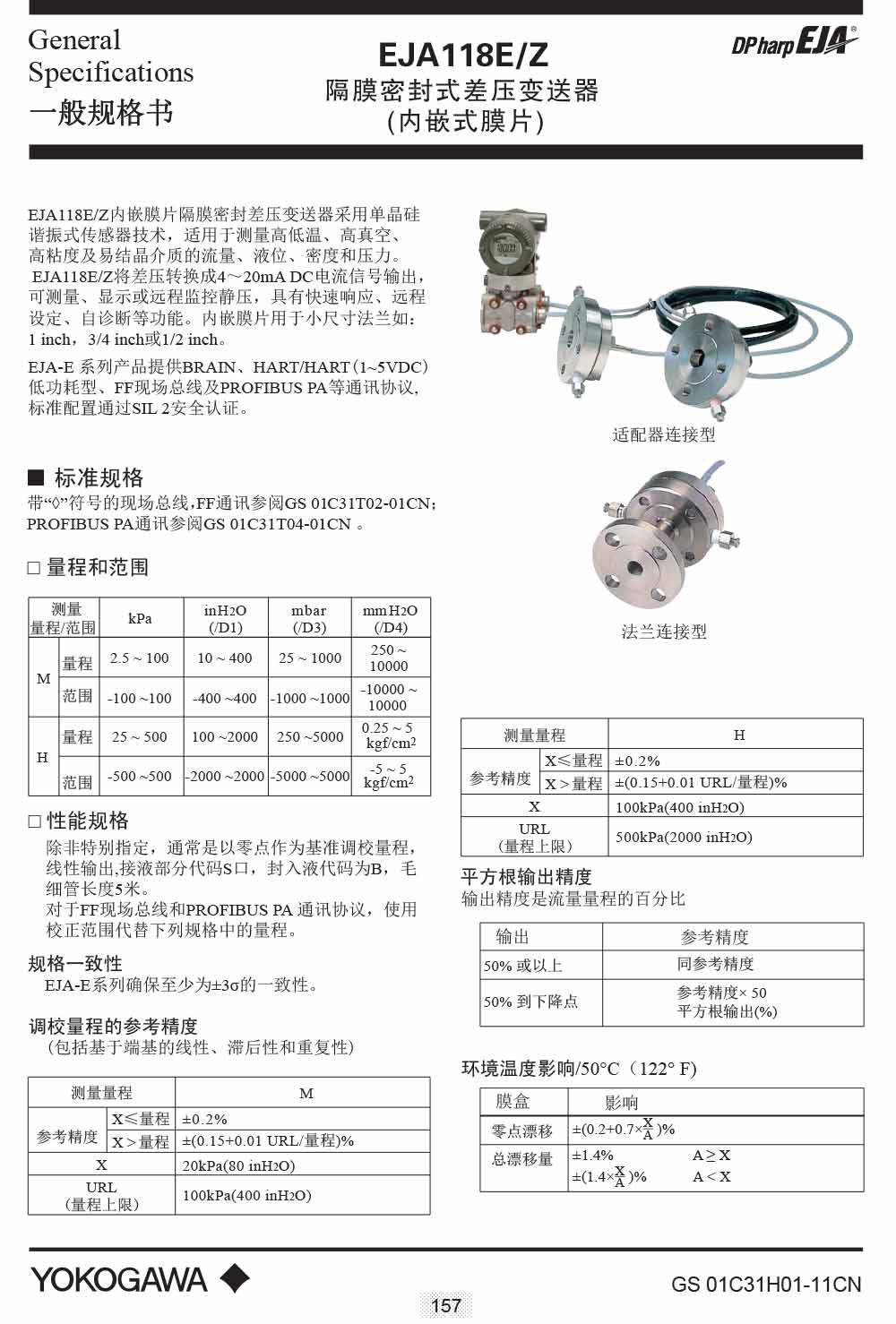 名稱:EJA118E/Z隔膜密封式差壓變送器