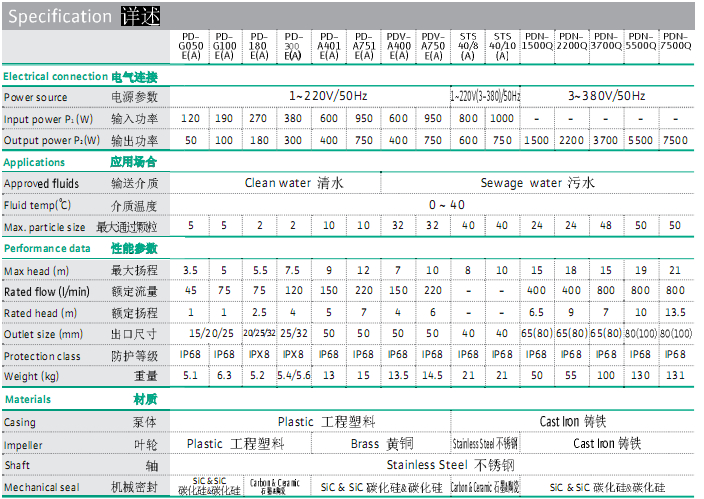 名稱:潛水泵PD-G050/100E(A)