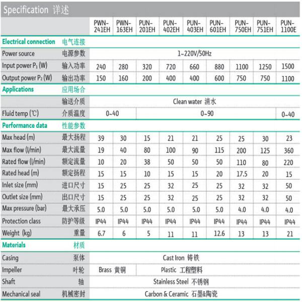 離心泵PUN-751EH◆·離心式葉輪。◆·結(jié)構(gòu)緊湊,易安裝,易維護。◆·各種機床配套。◆·家庭,花園供水。◆·小型暖通空調(diào)循環(huán)系統(tǒng),空氣能系統(tǒng)。◆·泵體:鑄鐵。◆·泵軸:不銹鋼。◆·葉輪:工程塑料。◆·機封:石墨+陶瓷。◆·耐溫:0-90°C